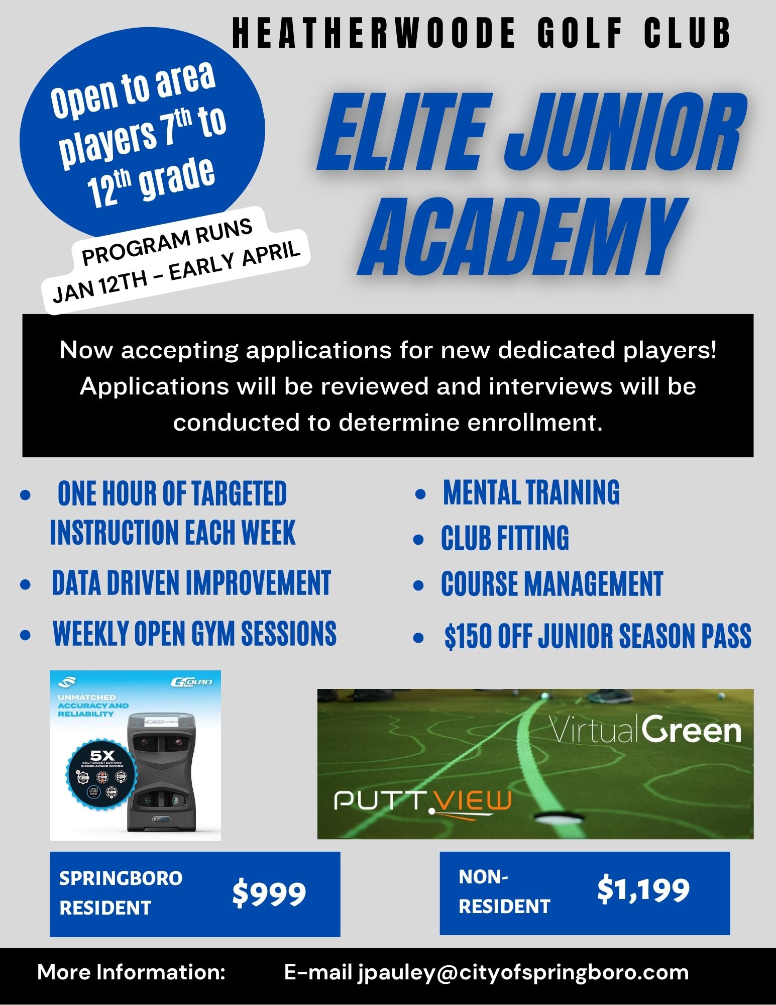 Elite Junior Academy Now accepting applications for new dedicated players. Download the application form below or stop by the golf shop for a printed copy. Click Here to Download our Application